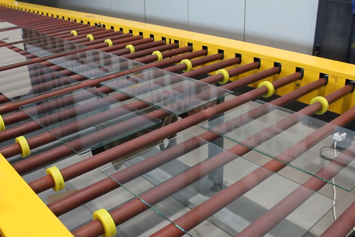Нагрев стекла в камере нагрева осуществляется непрерывно: стекло заходит в камеру и выходит из неё по заданной кривой температуры и кривой скорости движения, зависящей от вида и толщины стекла.